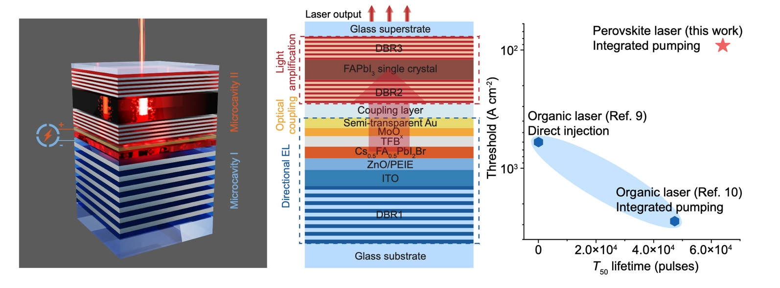 सेमीकंडक्टर लेजरकंप्यूटिंग में महत्वपूर्ण प्रकाश स्रोत हैं। पेरोव्स्काइट सेमीकंडक्टर्स कम परिचालन लागत और सिलिकॉन-आधारित ऑप्टोइलेक्ट्रॉनिक प्लेटफार्मों में आसान एकीकरण के साथ लेजर सामग्रियों का एक नया वर्ग है। उनके ट्यून करने योग्य उत्सर्जन स्पेक्ट्रा ऑप्टिकली संचालित लेज़रों को न्यूनतम संभव लेज़िंग सीमा तक पहुंचने में सक्षम बनाते हैं, जिससे महत्वपूर्ण तकनीकी अवसर खुलते हैं। लेज़रों को चलाने के लिए आवश्यक बाहरी ऊर्जा आमतौर पर दो रूपों में प्रदान की जाती है: विद्युत ऊर्जा और ऑप्टिकल ऊर्जा। हालाँकि, ऑप्टिकल नियंत्रण के लिए आमतौर पर उच्च गुणवत्ता वाले बाहरी प्रकाश स्रोतों की आवश्यकता होती है, जिससे व्यवहार्य उपकरणों की संख्या सीमित हो जाती है। विद्युत चालित पेरोव्स्काइट लेजर विकसित करना पेरोव्स्काइट ऑप्टोइलेक्ट्रॉनिक्स में एक मौलिक चुनौती है।
