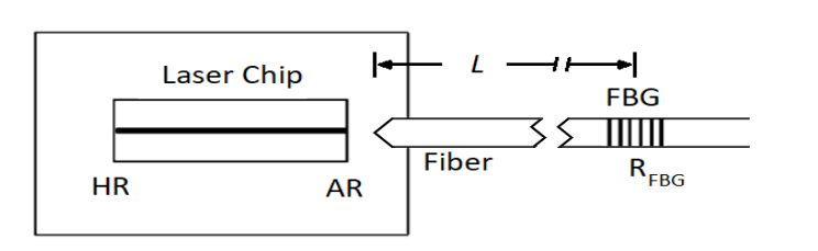 फाइबर ब्रैग ग्रेटिंग (एफबीजी) का उपयोग करके बाहरी कैविटी लेजर का निर्माण कम लागत वाले लेजर के प्रदर्शन को बढ़ाने के लिए एक लागत प्रभावी समाधान है। जैसा कि चित्र 1 में दिखाया गया है, एफबीजी को फाइबर पिगटेल में अंकित किया जाता है, जो आमतौर पर उत्सर्जक चिप के करीब होता है, जो एक बाहरी गुहा लेजर बनाता है।