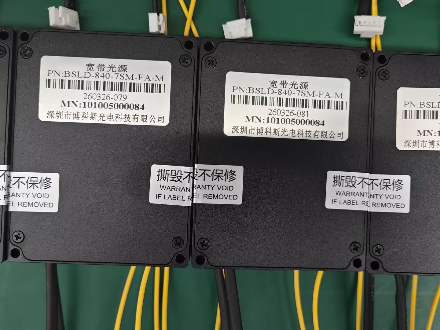 ● मुख्य उत्पाद:इस बार भेजे गए ब्रॉडबैंड लाइट सोर्स मॉड्यूल मॉडल हैंबीएसएलडी-840-7एसएम-एफए-एम, जिसमें व्यापक वर्णक्रमीय आउटपुट, उच्च शक्ति स्थिरता और कम ध्रुवीकरण-निर्भर हानि शामिल है, जो उन्हें फाइबर ऑप्टिक सेंसिंग, ऑप्टिकल परीक्षण और बायोमेडिसिन जैसे अनुप्रयोगों के लिए आदर्श बनाती है।